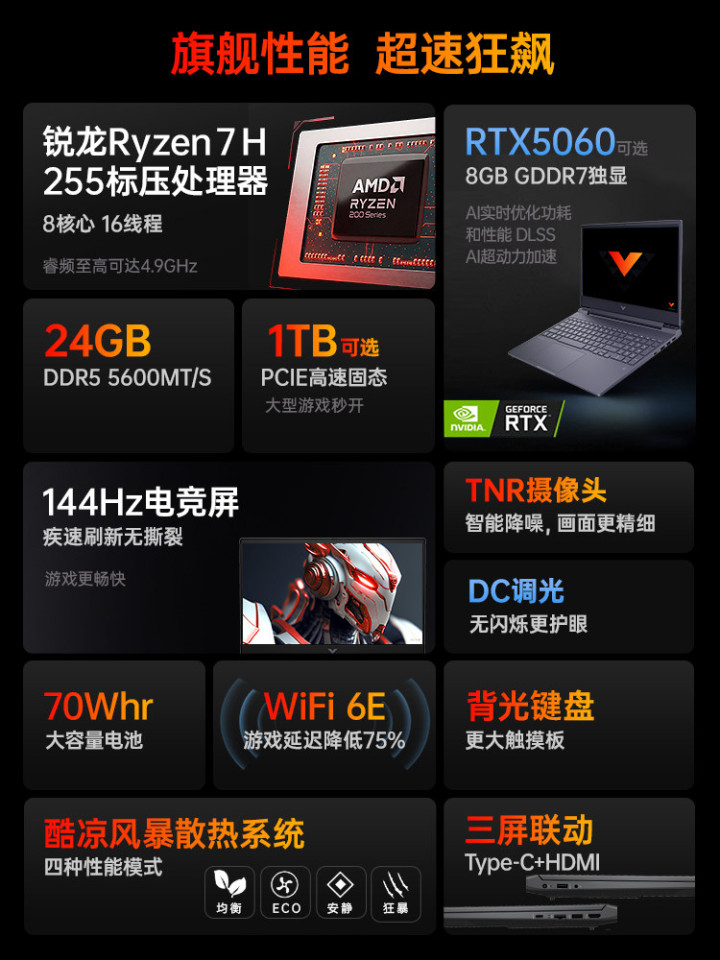 惠普推出光影精灵 11 锐龙版游戏本: H 255 + 至高 RTX 5060