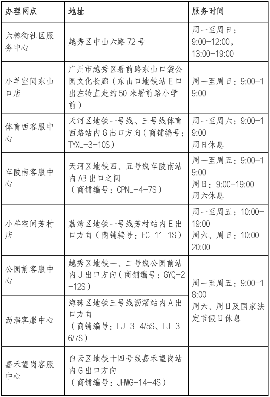 本东说念主合手证件及关联材猜想羊城通公司各劳动网点线下办理(详见下表)。